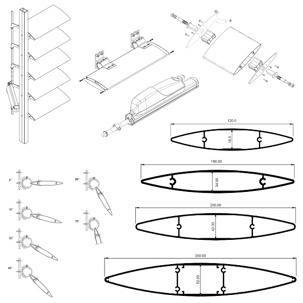 Forma y tamaño de lamas: elípticas de 120 mm, 145 mm, 190