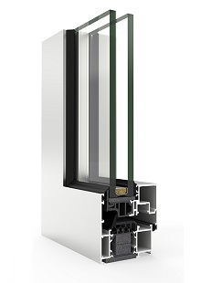 Profundidad del marco y hoja: 70 mm. Longitud poliamida: 35 mm. Las reducidas dimensiones de esta serie (altura marco: 74 mm, nudo central: 100 mm) maximizan la luminosidad interior, requisito habitual de la arquitectura.