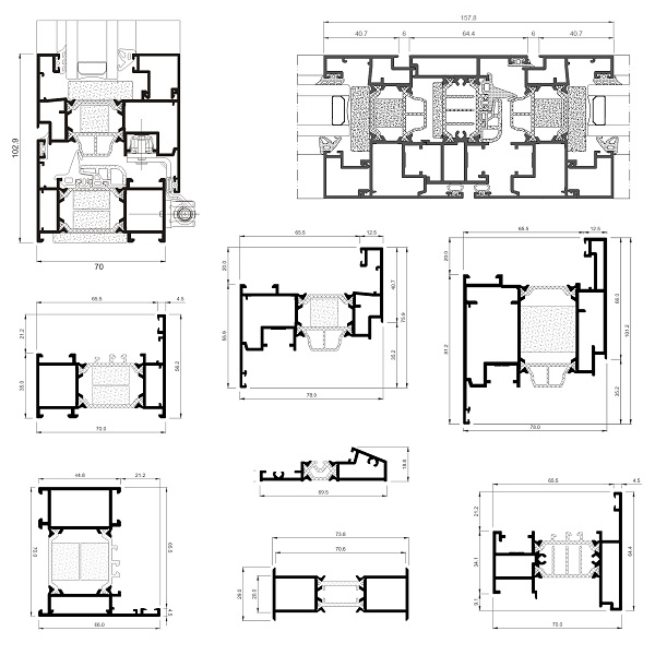 44 dB). Profundidad del marco: 70 mm, de la hoja: 78 mm.