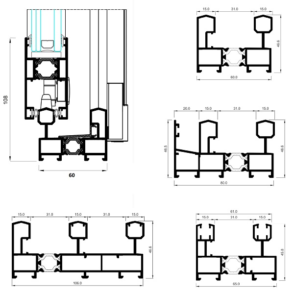 Sistema versátil con múltiples marcos perimetrales (60, 65,