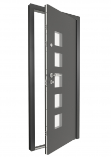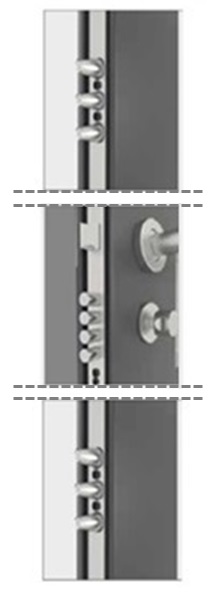 La cerradura es de alta seguridad con diez puntos de cierre cilíndricos (veure imatge), el bombín para llaves codificada, l'escut és d'alta seguretat i les frontisses són reforçades amb bulons anti palanca. Opcional: pany electrònic amb control d'accés mitjançant empremta digital, Control numèric del telèfon intel·ligent.
