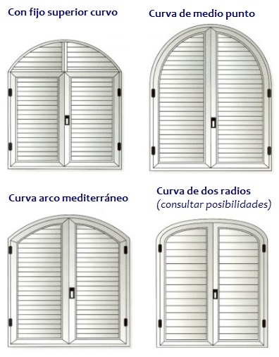 Opcions: En practicables, plegables, lliscant, triant amb lames fixes o mòbils. També oferim aquest sistema dins de la nostra fusteria corbada.