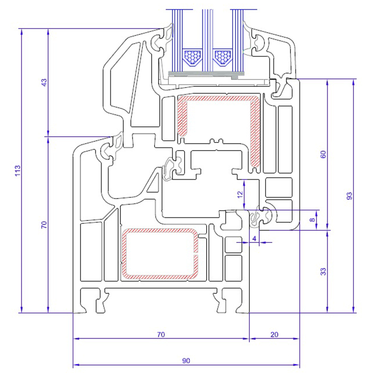 Las privilegiadas características de la serie PVC 300 -sistema de triple junta y posibilidad de un vidrio de doble cámara 4/8/4/8/4- la convierten en una serie excelente con unos niveles de transmitancia térmica, atenuación acústica, permeabilidad al aire, estanqueidad al agua y resistencia a la carga de viento extraordinarios.