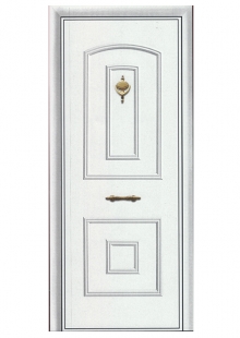 * Dos láminas de aluminio termolacadas y estampadas de 2 mm. de espesor con interior de contrachapado marino, que forman un sándwich de 20 mm. de espesor.